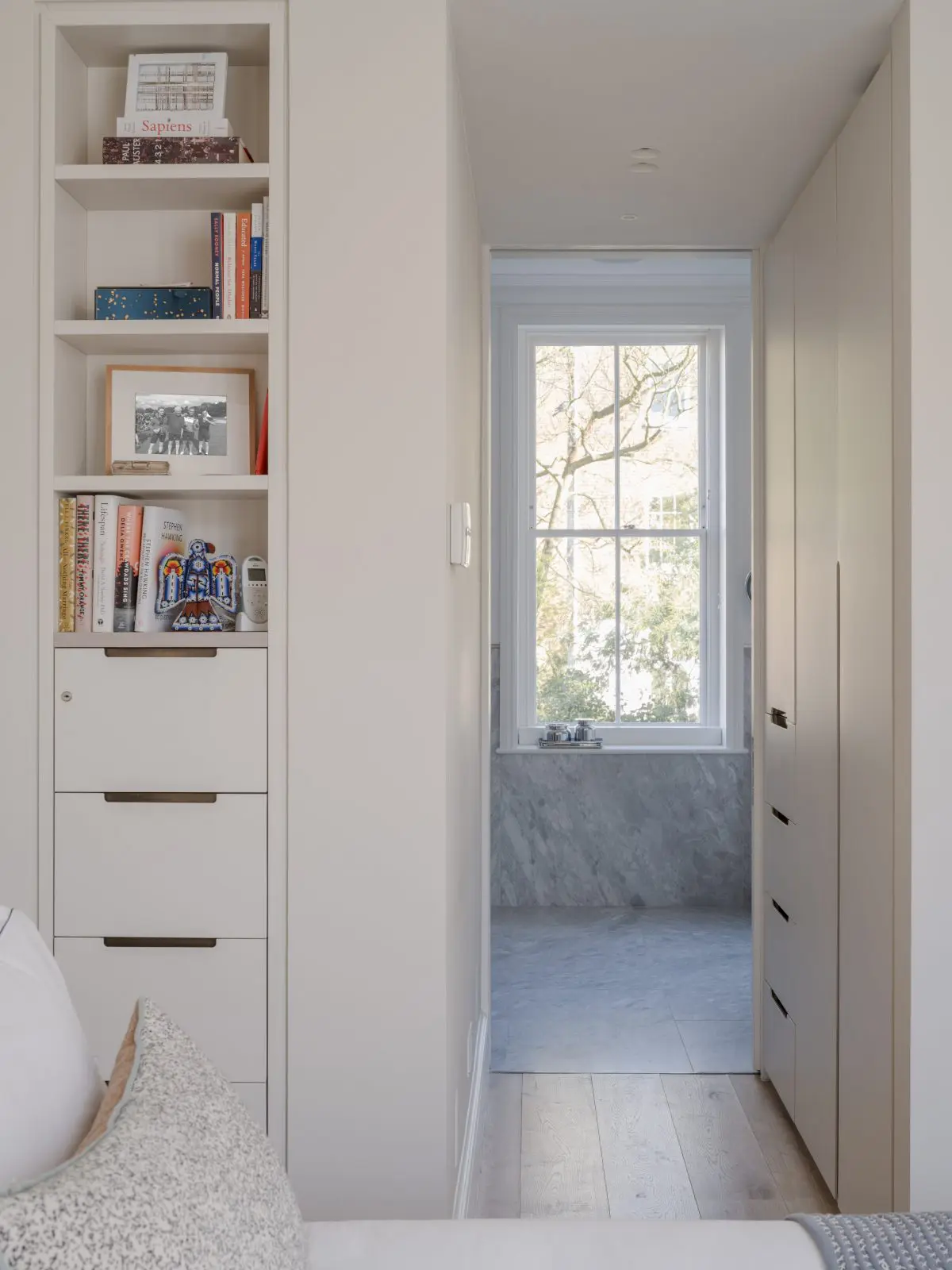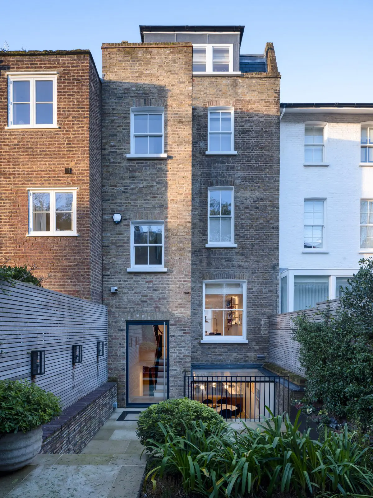 The internal refurbishment and remodelling includes a new basement level as well as a rebuilt closet wing extension, complete with a glass roof. An additional double height glazed infill extension opens up onto a basement level courtyard, allowing natural light to fill the basement and lower ground floor spaces.