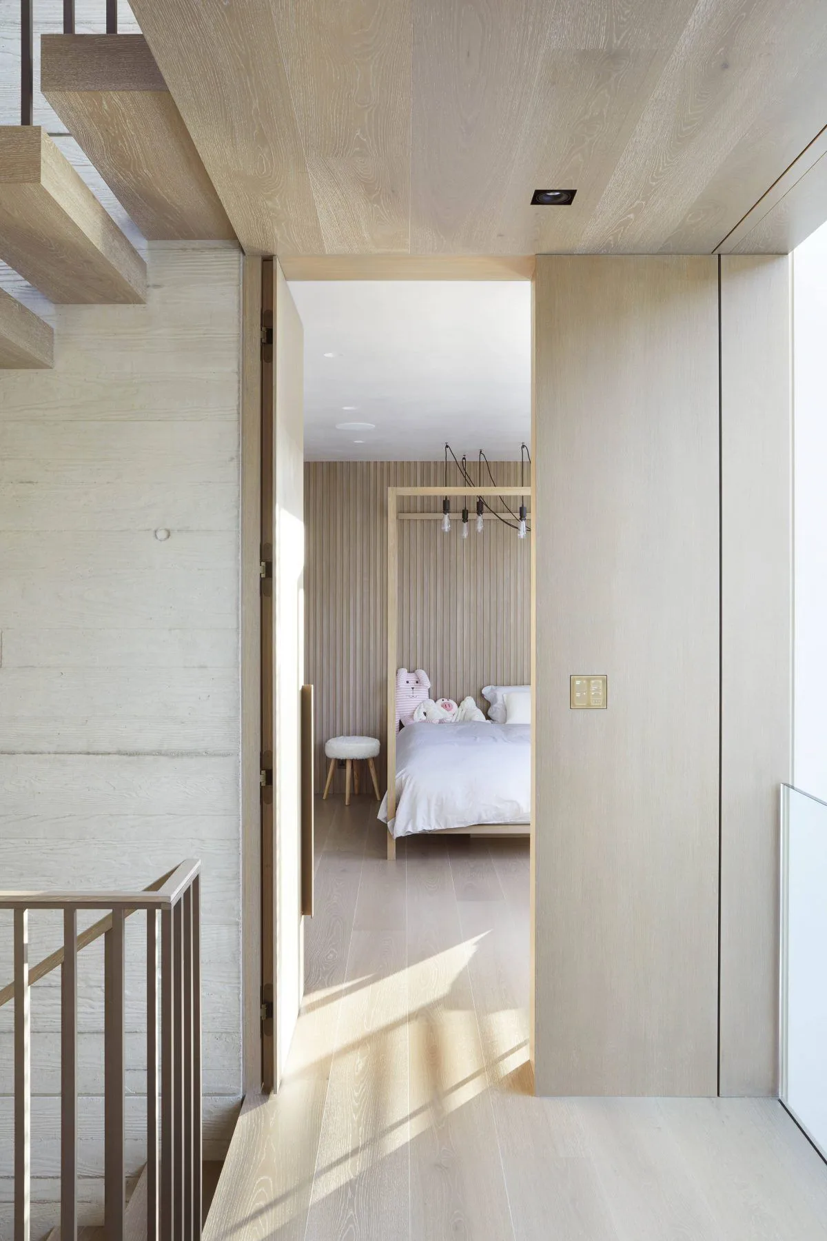 With our client – who was also the main contractor – we collaborated on our shared passion for exquisite detailing which proved instrumental in creating their home. In keeping with the distinct Arts & Crafts heritage of the area, we wanted to celebrate the joy of making with meticulous craftsmanship that extends from the tactile delight of the concrete walls to the bespoke metal hardware on the doors.