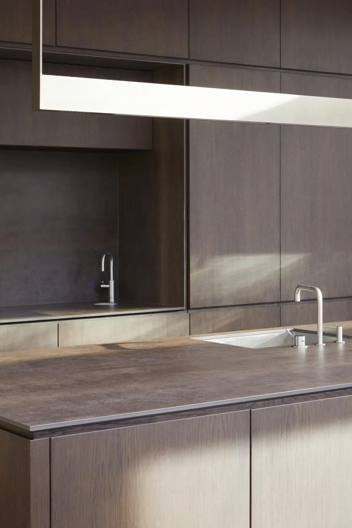 We craft spaces that focus on materials, light and details that help promote wellbeing for the people within them. Kenwood Lee House is a RIBA Award wining home in north London for a private client. In keeping with the distinct Arts & Crafts heritage of the area, we wanted to celebrate the joy of making with meticulous craftsmanship that extends from the tactile delight of the concrete walls to the bespoke metal hardware on the doors.